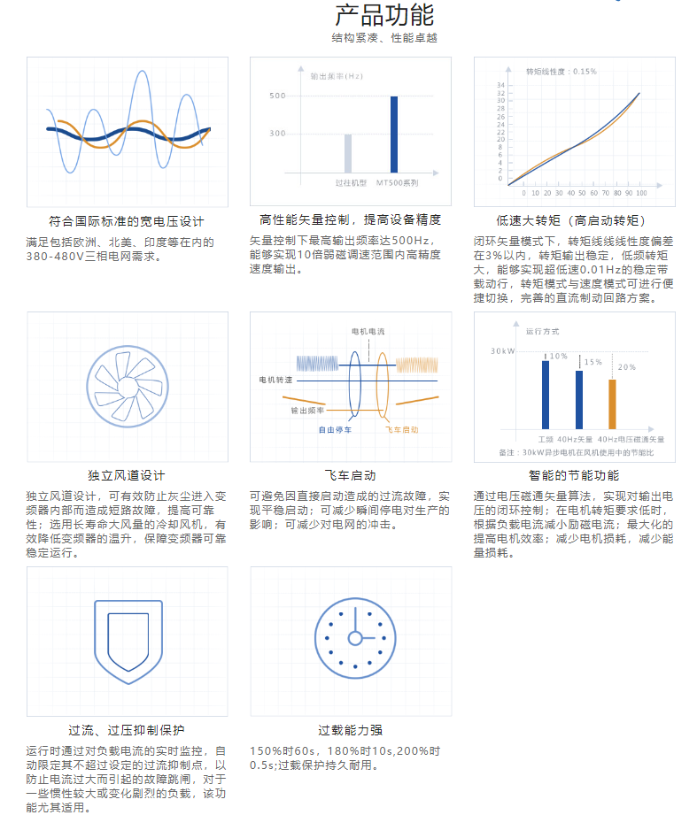 ⑤合理的EMC設(shè)計(jì):功率單元與控制單元分離,變頻器組柜方便,抗干擾能力強(qiáng);